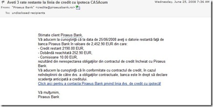 Nu, nu am credit cu ipotecă CASAacum, nu am datorie restantă faţă de banca Piraeus Bank, şi nu, nu am un contract încheiat cu Piraeus Bank. Am doar un nou spam prin căsuţa de mail. Piraeus Bank cracked?